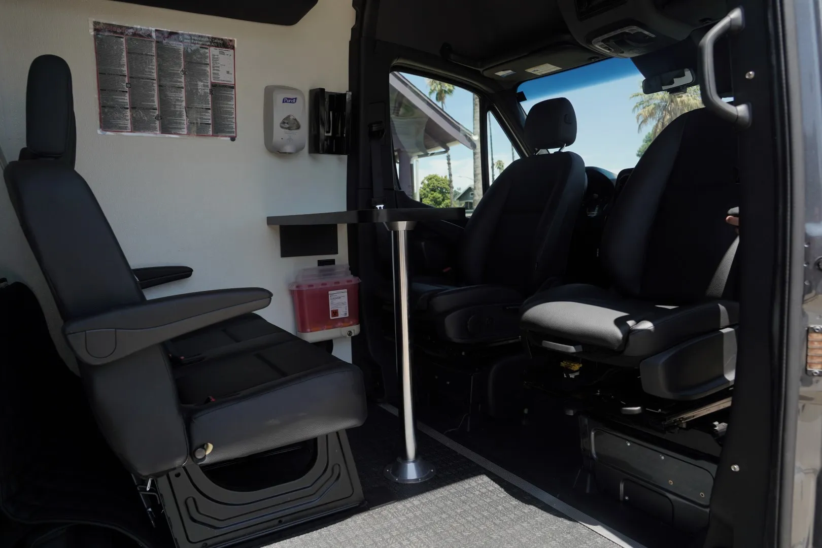Our MTU is equipped with two discrete spaces—one at the vehicle's center and the other at the rear—to accommodate testing and behavioral health interventions. The inclusion of solar panels ensures a comfortable interior climate even when the engine is inactive, proving especially beneficial for warm weather occasions.
